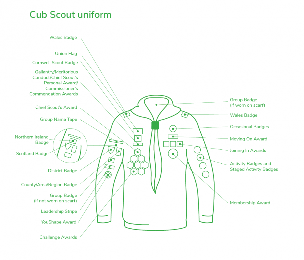 This complete uniform is normally only worn at formal events (e.g.local parades and ceremonies On a routine weekday evening we would expect your child to attend in uniform only from the waist up and for some adventurous activities we may not require uniform at all. Guidance on the uniform requirements is provided with the details of each forthcoming event or activity.